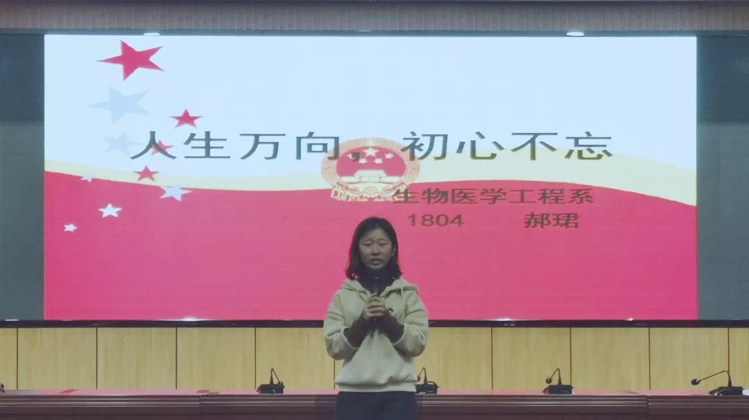 各位选手依次上台大显神通,路晓龙同学的演讲《不忘初心,无悔出发》首先以三个问题开场,听众积极配合他的提问,结合自身情况深思“自己是否做到不忘初心”,将听众带入思考之后,他将自己的观点娓娓道来,那平淡的话语中仿佛蕴含着无限的能量。