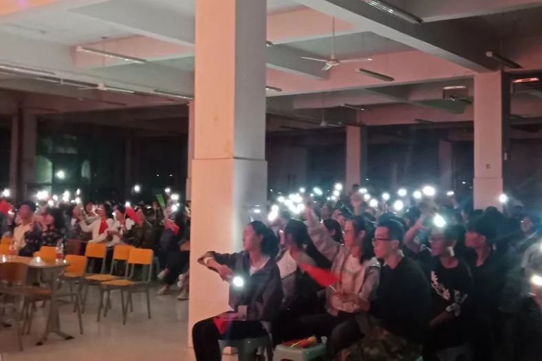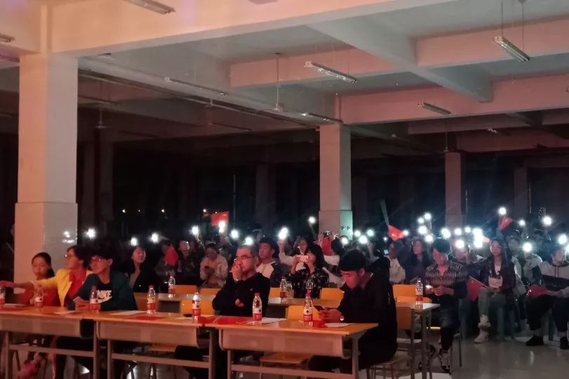 节目中还插入抢凳子游戏环节,同学们积极上台参与,游戏结束后有谢冰老师的助阵演出,一首《精忠报国》,激励着同学们爱国豪情的同时还对未来学习生活充满着信心。继豪情万丈的《精忠报国》之后,又有几个精彩纷呈的歌唱节目,台下观众也都纷纷跟唱,现场氛围和谐融洽。