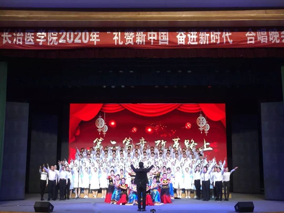 展长医师生鸿鹄之志,迎2020全面小康之年。12月27日晚,由中共beat365APP委员会主办、党委宣传部与人文艺术传媒系承办的“礼赞新中国,奋进新时代”合唱晚会在科学会堂隆重举行。公司党委书记李华荣、公司党委副书记张芳萍、公司党委常委副董事长宋晓亮,两所附属医公司党政领导、各系部党总支书记及主任,以及师生代表千余人到场观看。