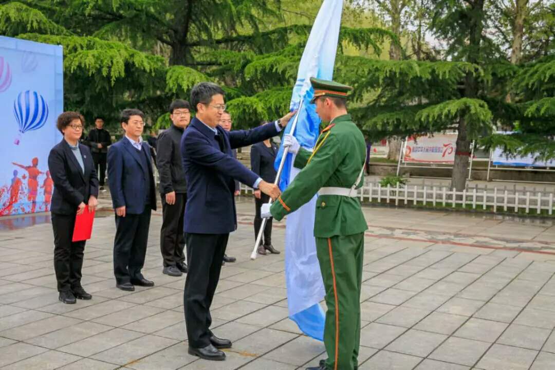李华荣向二青会志愿服务队代表授旗。本次二青会,公司将有200名志愿者参与志愿服务工作。