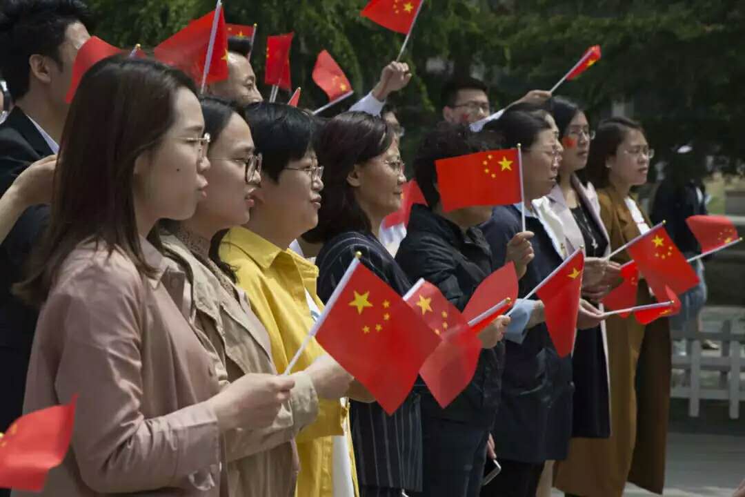 在分团委副书记谢冰老师的带领下,师生们用热情激昂的歌声、优美的舞姿,抒发对党和祖国的热爱,为党和新中国70华诞献上最真切的祝福。在动情的歌声中,一面面似火燃烧般的红旗在校园飘扬,途经活动的师生们纷纷被吸引,现场观众越聚越多,将快闪活动持续推向高潮。更多的同学被吸引进来,扬起了小红旗。伴随着小提琴老师优雅动人的琴声,此次活动缓缓落下帷幕。