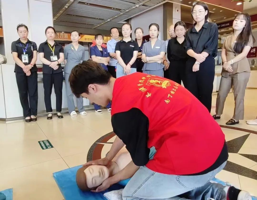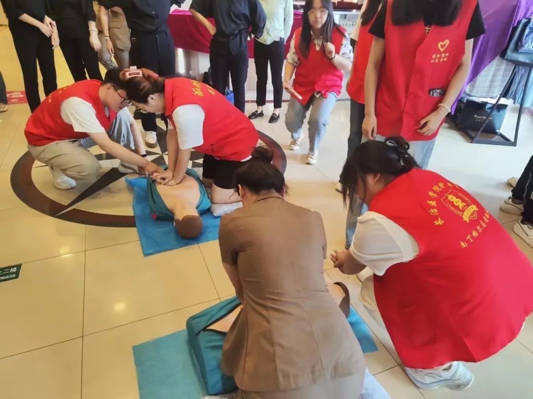上午8:30,队员们前往金威名店为商场工作人员宣讲心肺复苏急救知识。简单的准备动员后,韩婷婷老师首先向大家介绍本次“三下乡”活动的目的,接着为大家讲解和示范心肺复苏急救内容和流程,随后团队成员杨邵焜和杨超为大家进行讲解并操作示范。宣讲结束后,大家邀请商场员工体验急救流程。一位员工在体验后表示,“心肺复苏急救是非常有必要的,如果能真的把握黄金‘四分钟’的救援时间,就能在突发情况中挽救更多人的生命”。