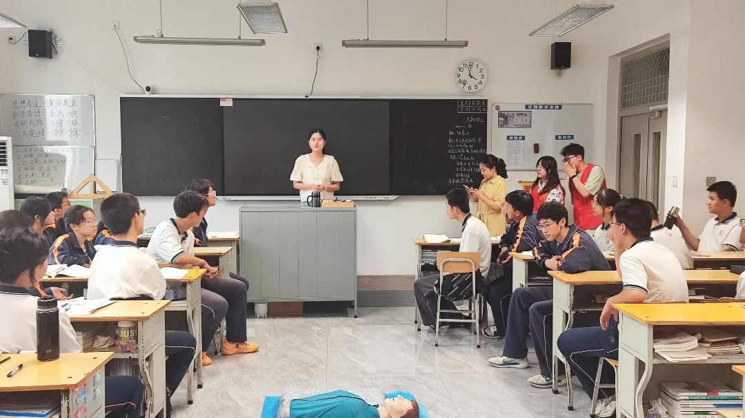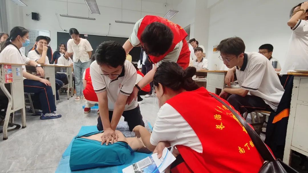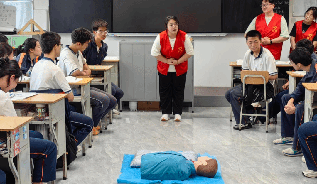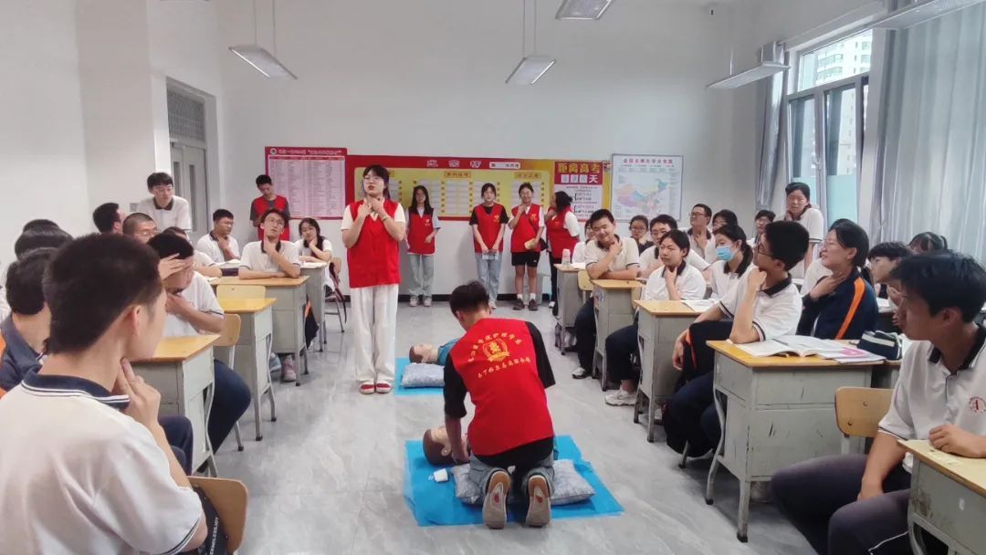 上午9:00,队员们来到高624班。经过简单的准备后,由韩婷婷老师为同学们介绍了团队的基本情况及本次活动的目的。随后,由王书仙和杨邵焜同学讲解并示范心肺复苏急救内容。讲解过后,几位员工代表受邀体验心肺复苏按压流程,队员们在旁边耐心给予指导,同学们积极参与认真学习,并进行主动提问,现场气氛热烈。接着冯荷梦同学为同学们讲解了海姆立克急救知识。
