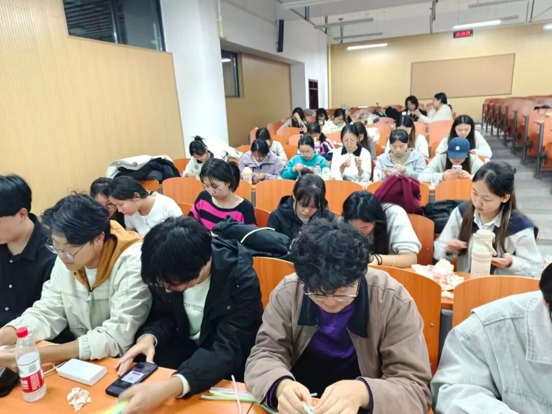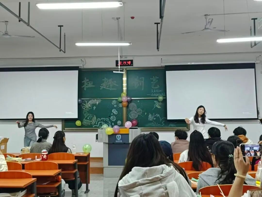 活动伊始,一首吉他弹唱点燃全场热情,紧接着,拉丁舞和双人民族舞表演强势接档,之后,两位男生的合唱使现场氛围达到了高潮。随后,扭扭棒手工体验接力开启,五颜六色的扭扭棒被整齐码在盒子里,同学们各展其才将其扭出丰富的形状。最后,抽奖环节为活动画上圆满句号。