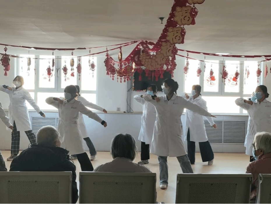 为丰富老人们的文化生活、增强身心活力。11月27日,护理2301班在长治市养老院积极组织开展“暖身悦心 乐聚重阳”志愿服务活动,本次活动由附属和济医院侯玲老师主持,采用分层锻炼+集中展演的形式开展。
