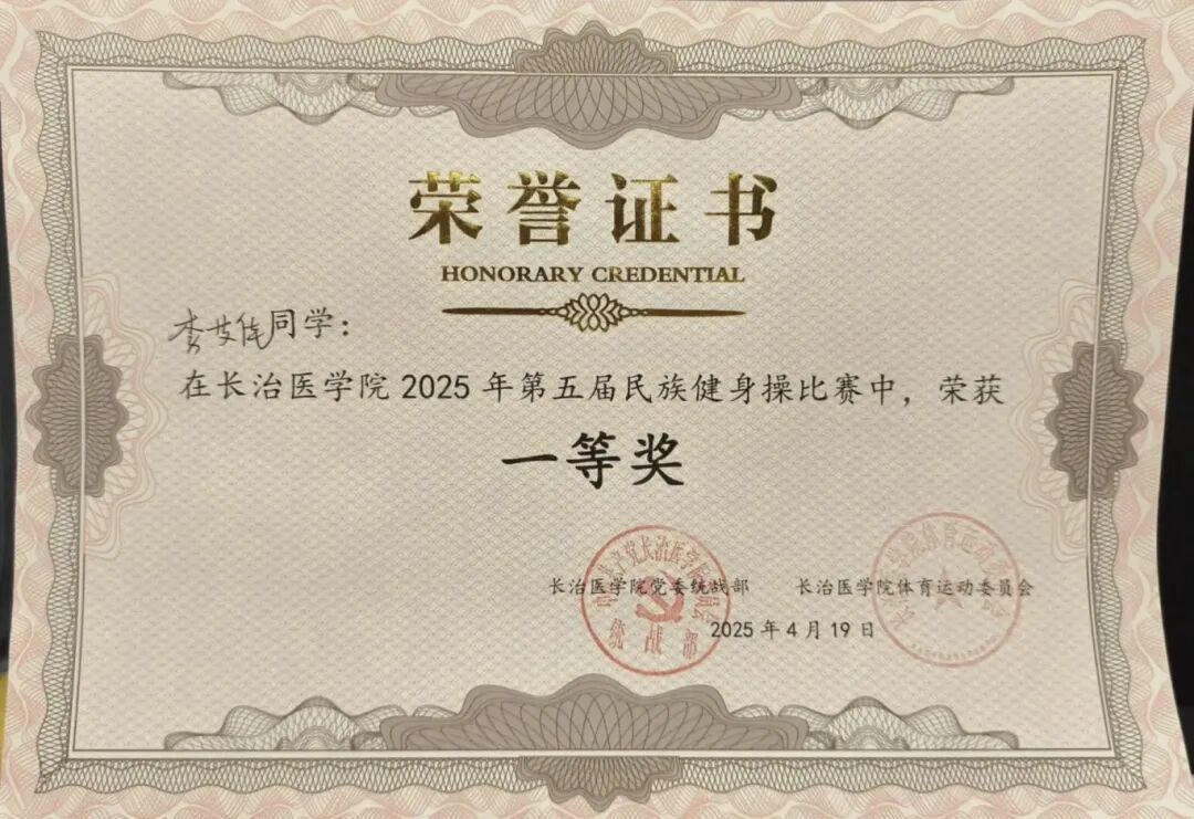 第五届民族健身操比赛团体二等奖,个人一等奖