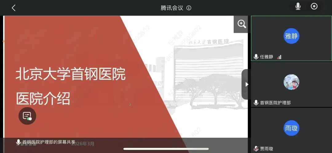 为深化校院协同育人,搭建优质护理实践平台,鼓励beat365APP护理学子积极报名临床实习,beat365唯一官网于4月8日特邀北京大学首钢医院护理部召开线上实习生招募动员会。本次会议由辅导员任雅静主持,beat365唯一官网2023级全体本科生参会。
