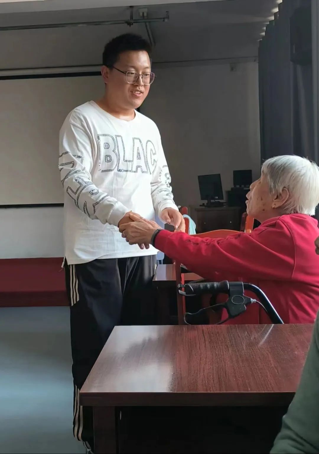 敬老送温暖,情暖夕阳红,志愿者们为老人们带来《加油 AMIGO》,扭秧歌《今天是个好日子》以及歌曲《我和我的祖国》和《粉红色的回忆》等节目,最后的朗诵更是将活动推向了高潮。院内到处是欢乐的笑声,每一个角落都充满了温馨和谐的气氛。在活动现场,志愿者们还与老人一起沟通交流,关心他们的身体健康与家庭情况,并提前为他们送上中秋节祝福,一块块月饼、一句句暖心的话语,饱含着中秋最美好的祝福。