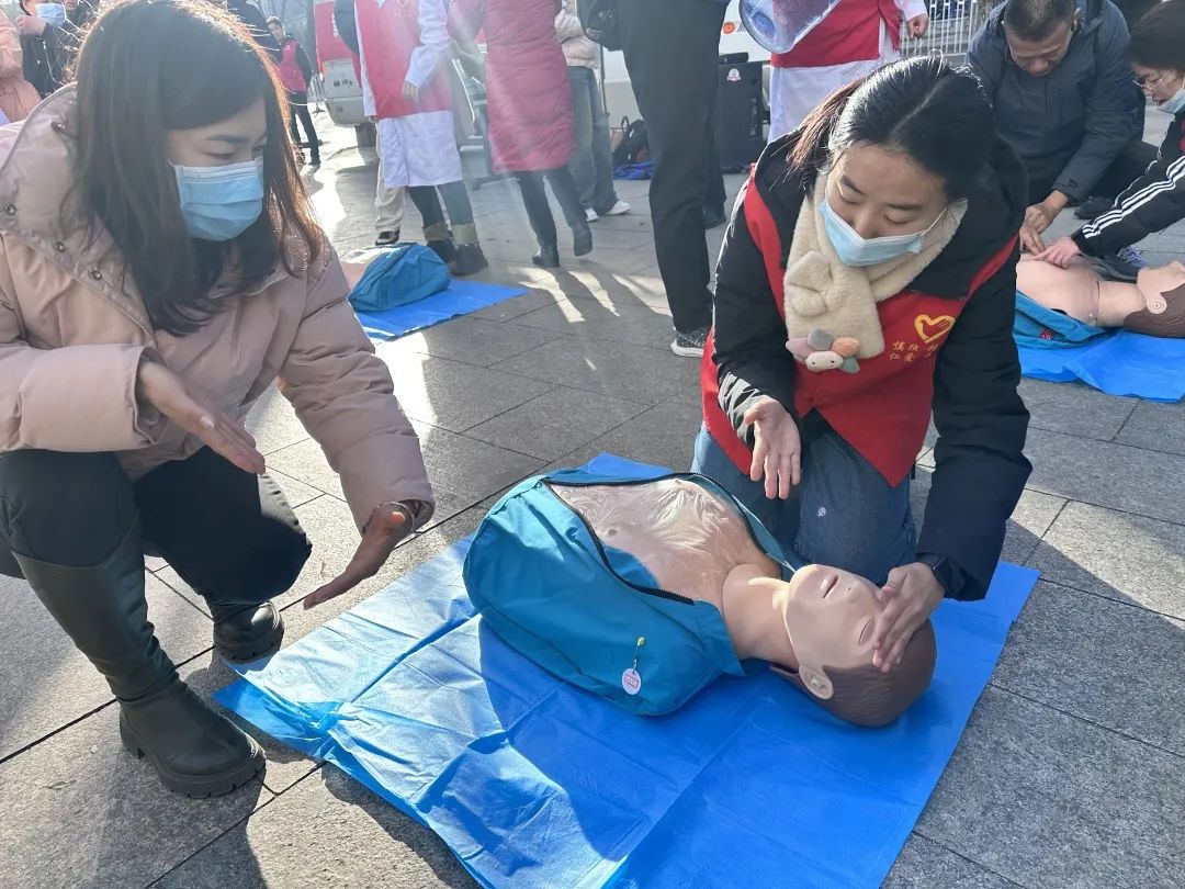 随后的实操演练环节,现场气氛十分热烈,居民争先恐后利用模拟人练习胸外按压、人工呼吸等实操练习,志愿者耐心细致地逐一进行操作指导。