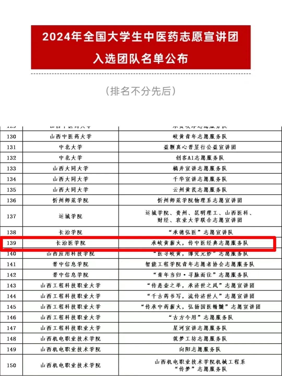 近日,中国青年志愿者官方公众号公布了《2024年“全国老员工中医药志愿宣讲团”入选团队名单》。其中,公司组建的“承岐黄薪火,传中医经典”志愿服务队成功入选。
