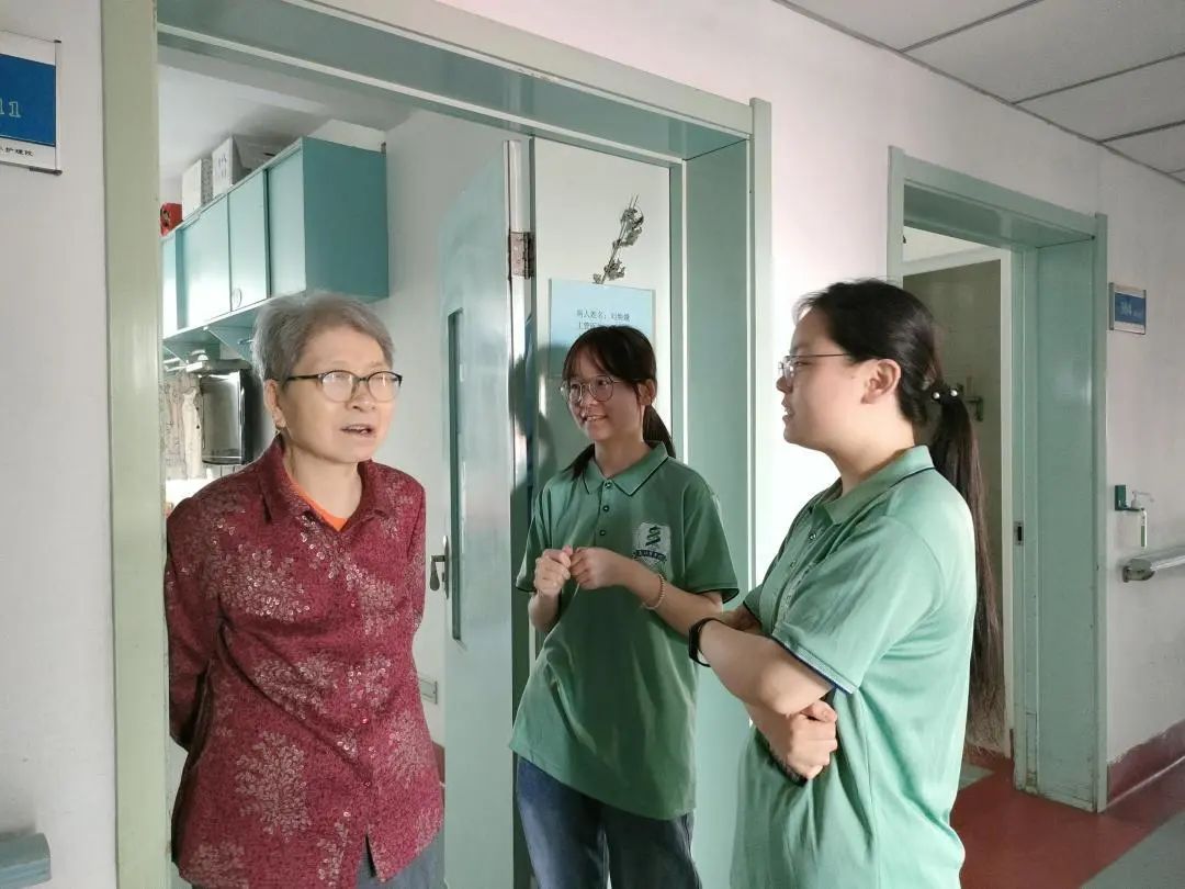6月30日上午,在杨蓉主任的带领下,我们来到了beat365APP附属惠丰医院,医院领导与志愿服务队带队老师刘连红、指导老师温柔以及12名队员举行了见面会。会上老年科主任陈东芳对大家的到来表示欢迎,老年科护士长陈瑞珍对大家的到来表达了感谢。随后,陈护士长带领大家了医院各部门职能、病人的基本的照护和医疗情况,以及医院服务等内容,服务队全体成员也一起参与到了全院大查房当中。