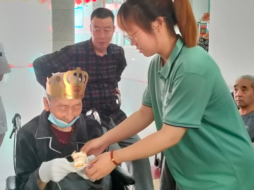 医院为6月份过生日的老人举办了集体生日会,医院护士与服务队全体成员为老人们送上了诚挚的祝福并为老人们唱了生日歌,表演了舞蹈,一位奶奶还与队员们组成表演团队,为大家表演了《唱支山歌给党听》。在生日过程中,我们喂行动不便的老人吃蛋糕帮助他们戴生日帽、整理衣物等等。