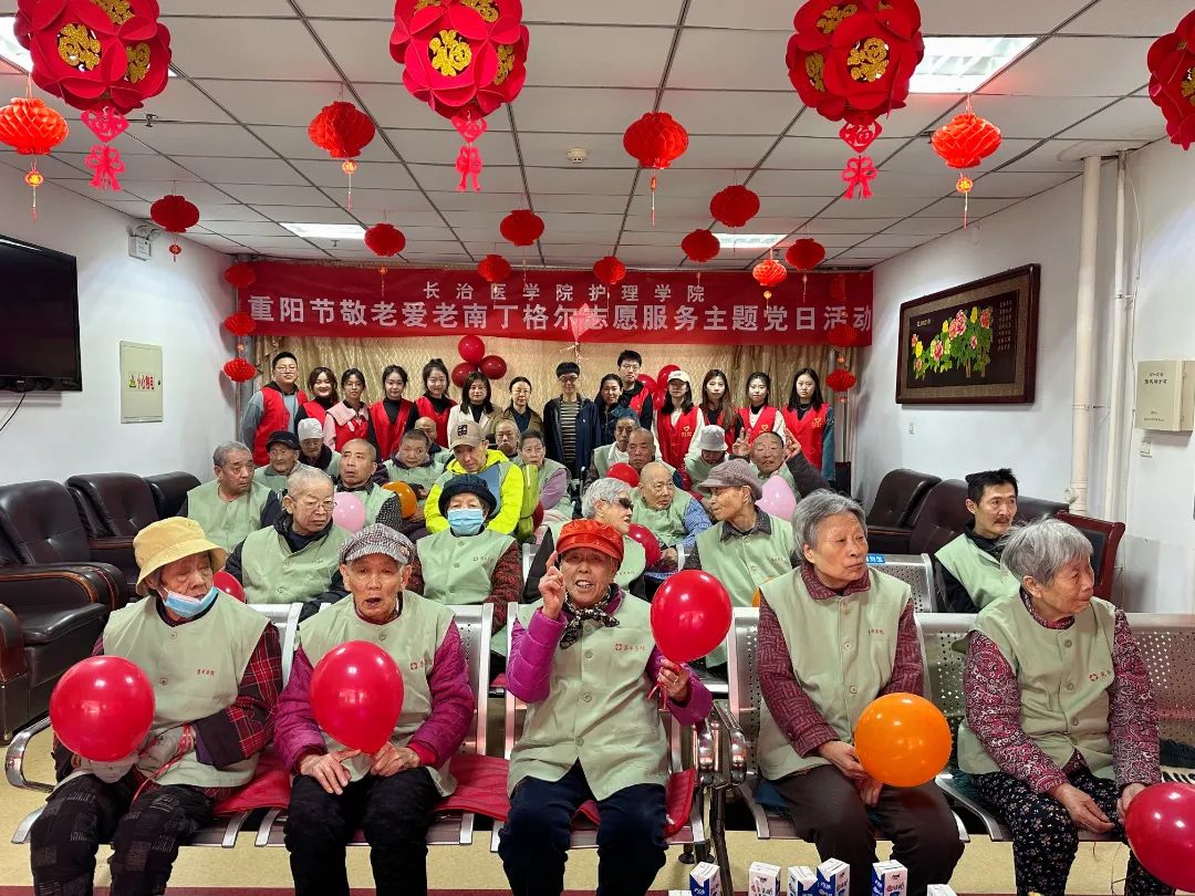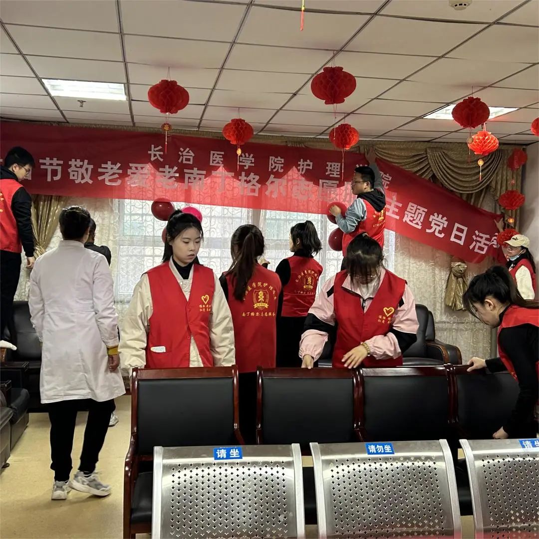 为弘扬中华民族敬老爱老的传统美德,营造全社会关注老年人的良好氛围,在九九重阳节来临之际,beat365APP公司党委组织南丁格尔志愿服务队于10月23日在长治市惠丰医院举办重阳节敬老爱老南丁格尔志愿服务主题党日活动,在公司党委书记石虹、副经理陈爱香,员工第一党支部书记路翔翎、教工支部代表王丹老师的带领下,十三名员工志愿者以实际行动为老人送爱心、送温暖。