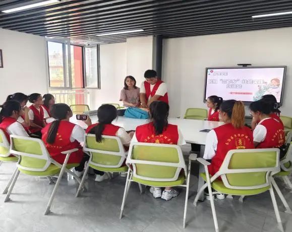 2023年6月30日上午八点半,在带队老师郝燕婷和指导老师张静的带领下,护理学系南丁格尔志愿服务队13名成员到图书馆四楼研讨室召开暑期“三下乡”社会实践培训会。