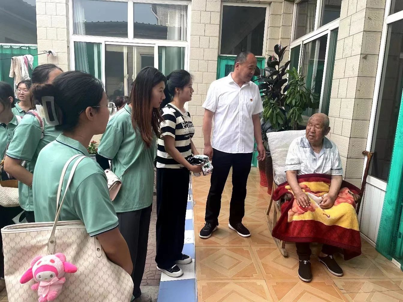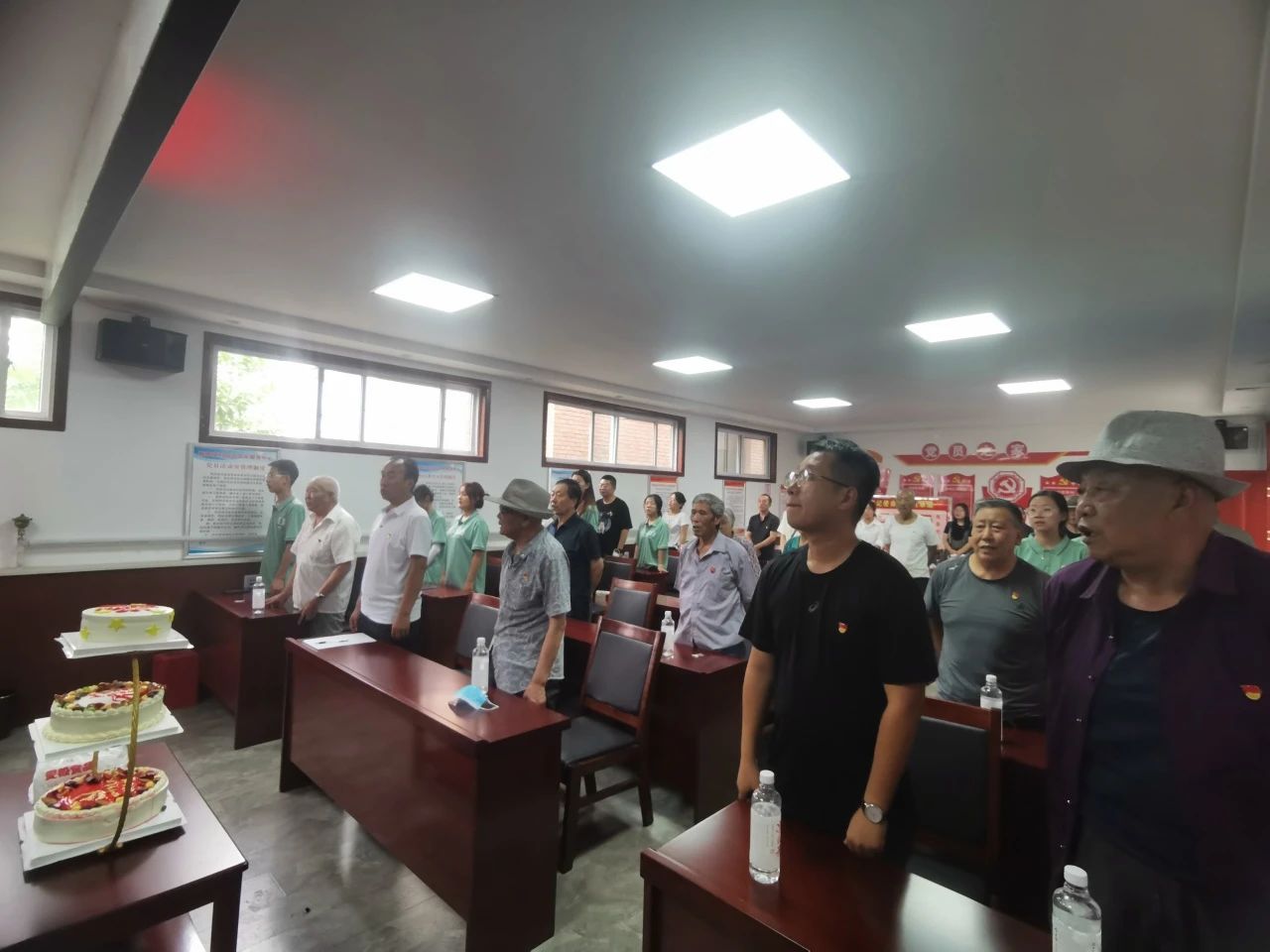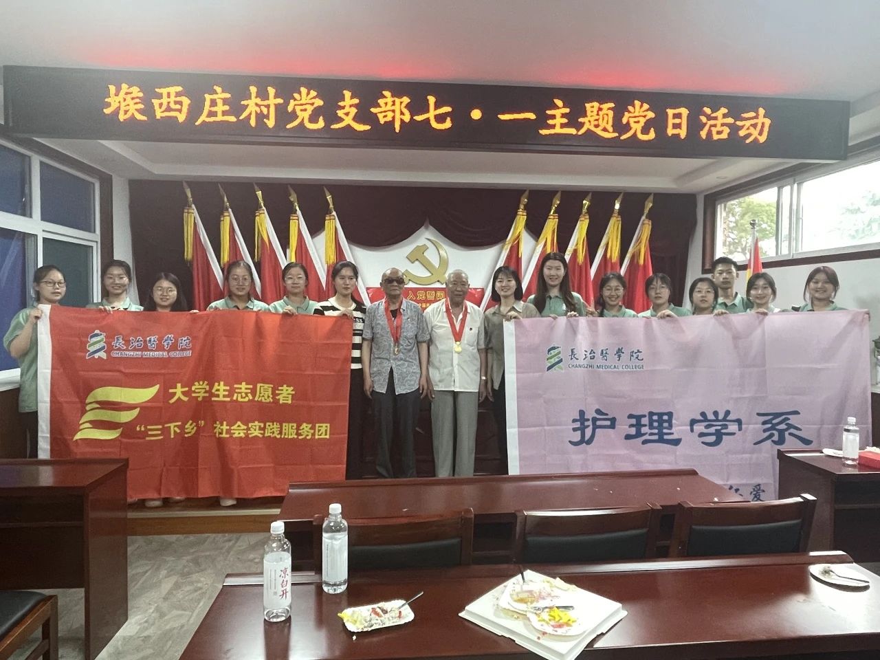 学百年党史明红色思想,以青春长征传红色基因。下午4:00大家前往堠西庄村党员活动中心参加由堠西村人民政府举办的中国共产党建党102周年党建活动。大家通过党课的学习更加深入地了解了中国共产党成立一百多年来的辉煌历史,当地政府工作人员为申振山和康锁只两位老爷爷颁发了党龄50周年纪念章,志愿者代表卫洁分享心得体会。在他们的身上,我们看到了信仰的力量,申爷爷即兴作诗送给护理学子:“党是阳光我是苗,雨露滋润把我交,不忘初心永向党,勇毅前行快步跑”,表达了他的殷切嘱托。赢得了大家的连连掌声,活动结束后大家合影留念。