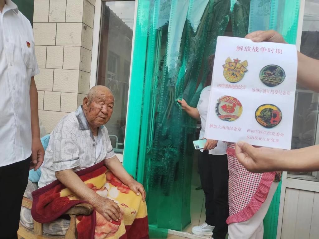 会后,大家在堠西庄村支书的带领下前往参加过淮海战役、渡江战役的老英雄申大井爷爷的家里,在听到老英雄的光辉事迹,看到一个又一个荣誉的勋章后,大家肃然起敬。我们也对老英雄的身体状况表达了热切的关心,并为爷爷奶奶测量血压,为他们送上最真切的祝福。