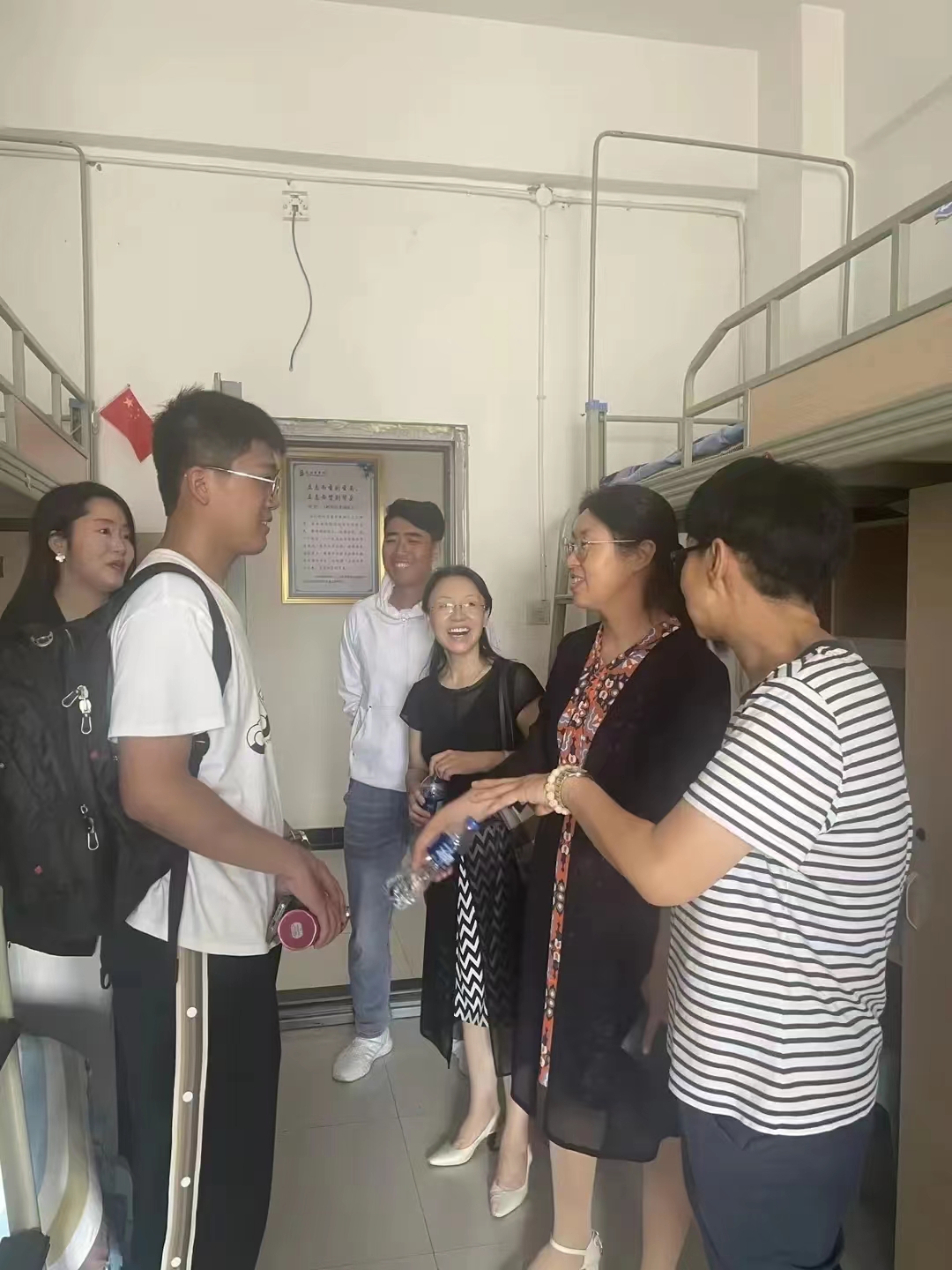 慰问送祝福,关怀暖人心。在员工宿舍内,学院领导及老师与家长、同学们亲切的交谈,了解同学们的家庭情况,兴趣爱好等,叮嘱新生同学们来自五湖四海,欢聚一堂,要倍加珍惜彼此的友谊,互相帮助、理解、包容,共同进步。老师们还详细询问了同学们是否适应新的学习环境以及入住感受,希望同学们能尽快适应环境,制定目标、做好规划、合理安排生活作息,强调同学们在宿舍内务必注意用电安全,人走关门,积极参加一些学校举办的活动、比赛等。