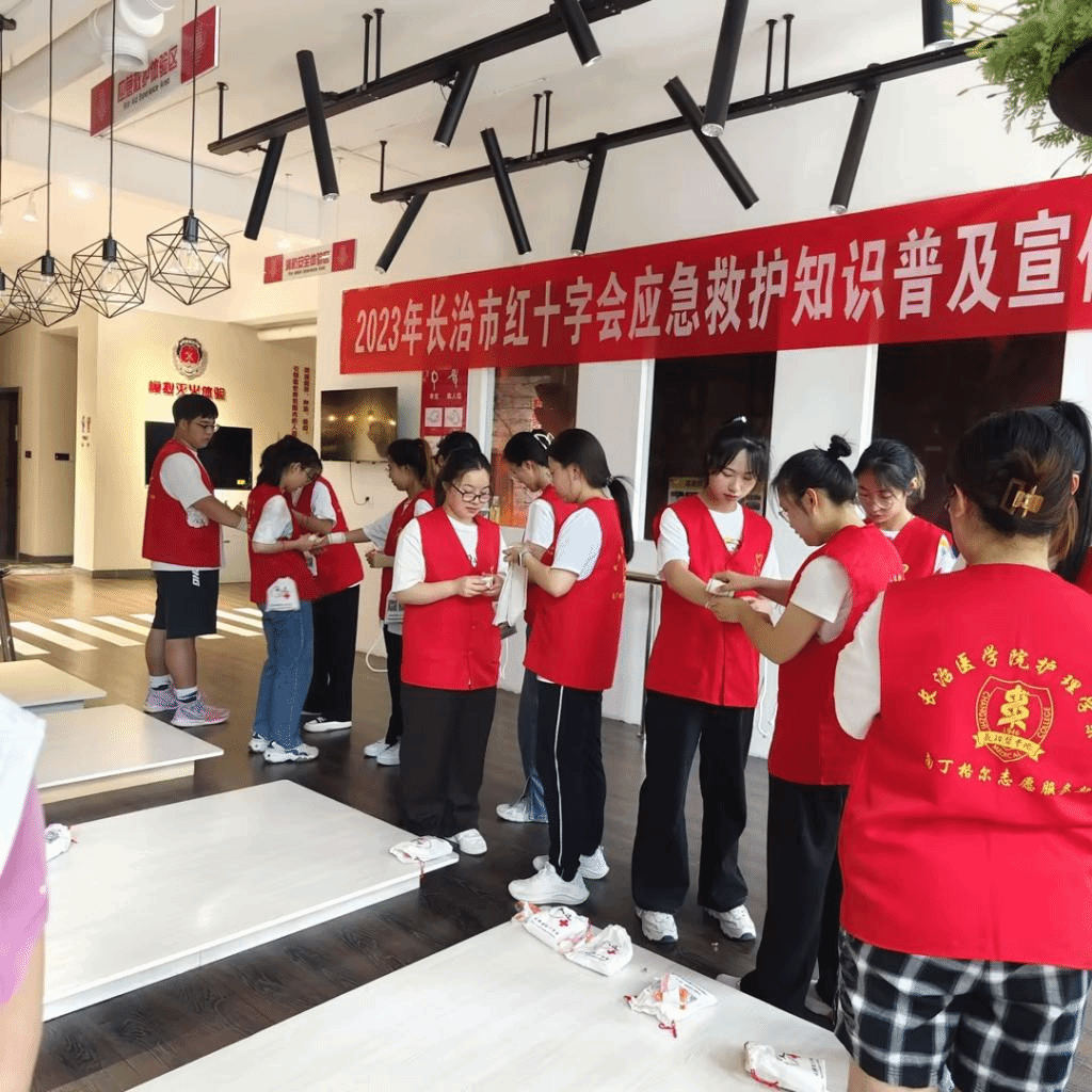 2023年7月1日,护理学系南丁格尔志愿服务队13名队员,在带队老师郝燕婷的带领下,来到长治市红十字生命安全教育体验馆开展志愿服务活动。