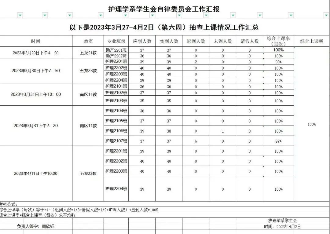 现针对第六周(3月27日-4月2日)系员工会自律委员会查课时迟到的同学进行通报,望同学们引以为戒,提高时间观念,按时上课。