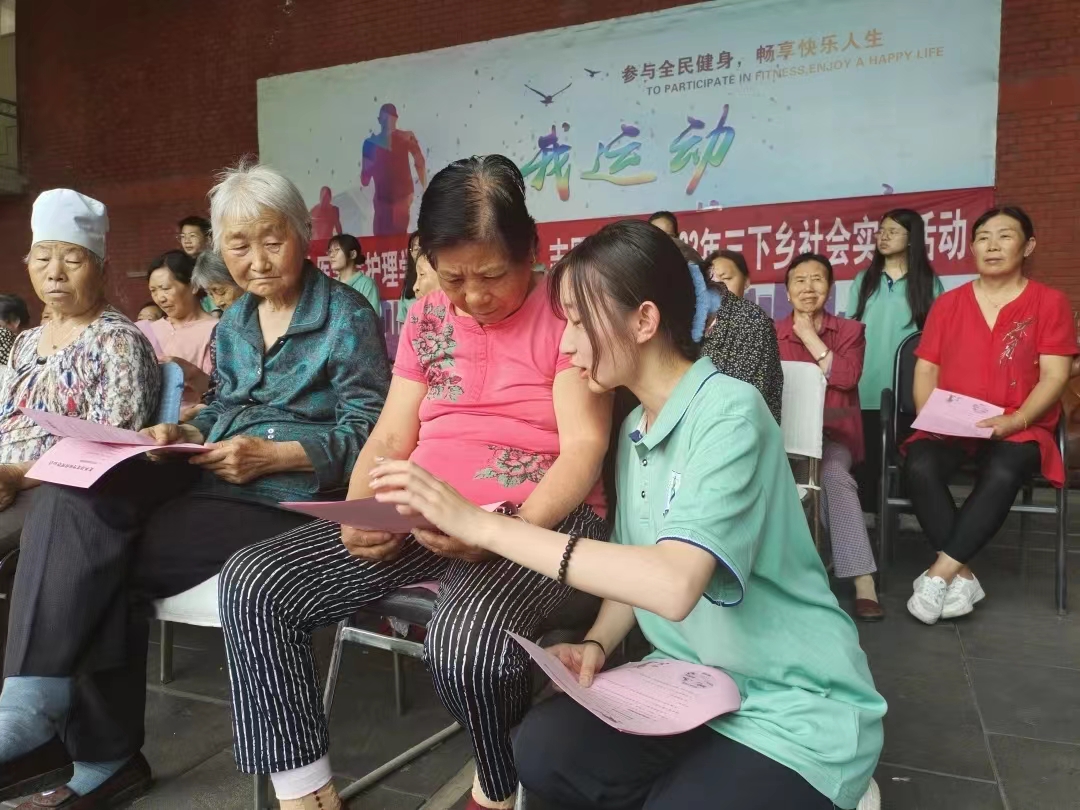 奋斗是青春最亮丽的底色,行动是最有效的磨砺。作为社会未来的建设者,我们应该走出校园,来到社会,服务社会,在此次活动,走访居民中运用我们所学的专业知识为他们测量血压,增强他们对疾病的预防意识,使我深刻认识到自己所处的社会位置,明确自己肩上的责任与使命,让我吸收了新的思想与知识。此次活动让我真切感悟到,我们要把学到的知识运用于实践,在实践中继续学习提高,才能真正成为对社会有用的人。