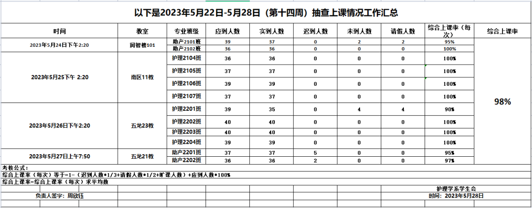 现针对第十四周(5月22日-5月28日)系员工会自律委员会查课时迟到的同学进行通报,望同学们引以为戒,提高时间观念,按时上课。