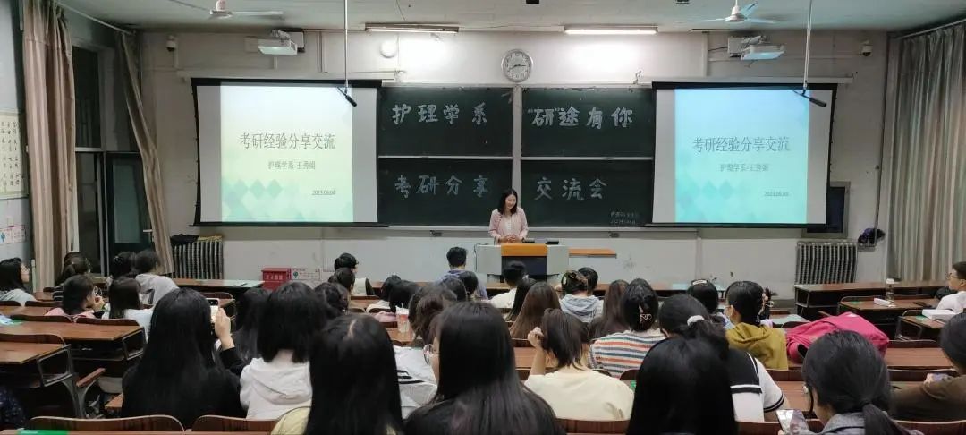 为给护理学系员工提供一个考研经验交流的平台,帮助同学们科学掌握考研备考方法、明确考研目标、调适备考情绪、坚定考研信心,护理学系于6月5日晚7:00在校本部南区11教和12教举办“‘研’途有你,考研面对面”交流分享会。