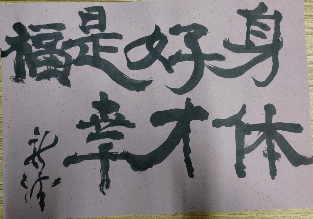 到达养老院之后,志愿服务队队员首先向老人们作了简单的自我介绍,并向爷爷奶奶们问好,接着开始为老人们测血糖、测量血压,老人们不时提问,同学们耐心解答,并叮嘱血糖、血压过高的老人,在日常生活中饮食尽量少油少盐,多吃蔬菜,合理用药,坚持锻炼身体。之后,志愿者陪着老人们拉家常、给他们讲笑话,并帮助打扫卫生、挂门帘等,做一些力所能及的事情,为老人们送去关爱和温暖,老人们拉着志愿者的手嘘寒问暖,也让服务队的成员们倍感温暖,真切感受到老一辈对年轻一代的殷切期望和关怀;在活动过程中,老人们给志愿者们讲述了他们年轻时的故事,大家一起合唱了《没有共产党就没有新中国》等红色经典歌曲,志愿者和老人们一起学做了《红星闪闪》手指操,并一起做了互动游戏,随着音乐律动,笑容洋溢在每个人的脸上;接下来,一位爷爷拿出准备好的笔墨纸砚,为志愿者们在纸上写下“身体好才是幸福”、“前程似锦”的美好祝福,寄托了老一辈对于我们青年一代的希冀;最后,张静老师带队员们来到一位奶奶的小院——艺术之家,奶奶给我们讲述了这个小院的设计风格,队员们在花草中感悟到艺术的魅力,体会着岁月静好。