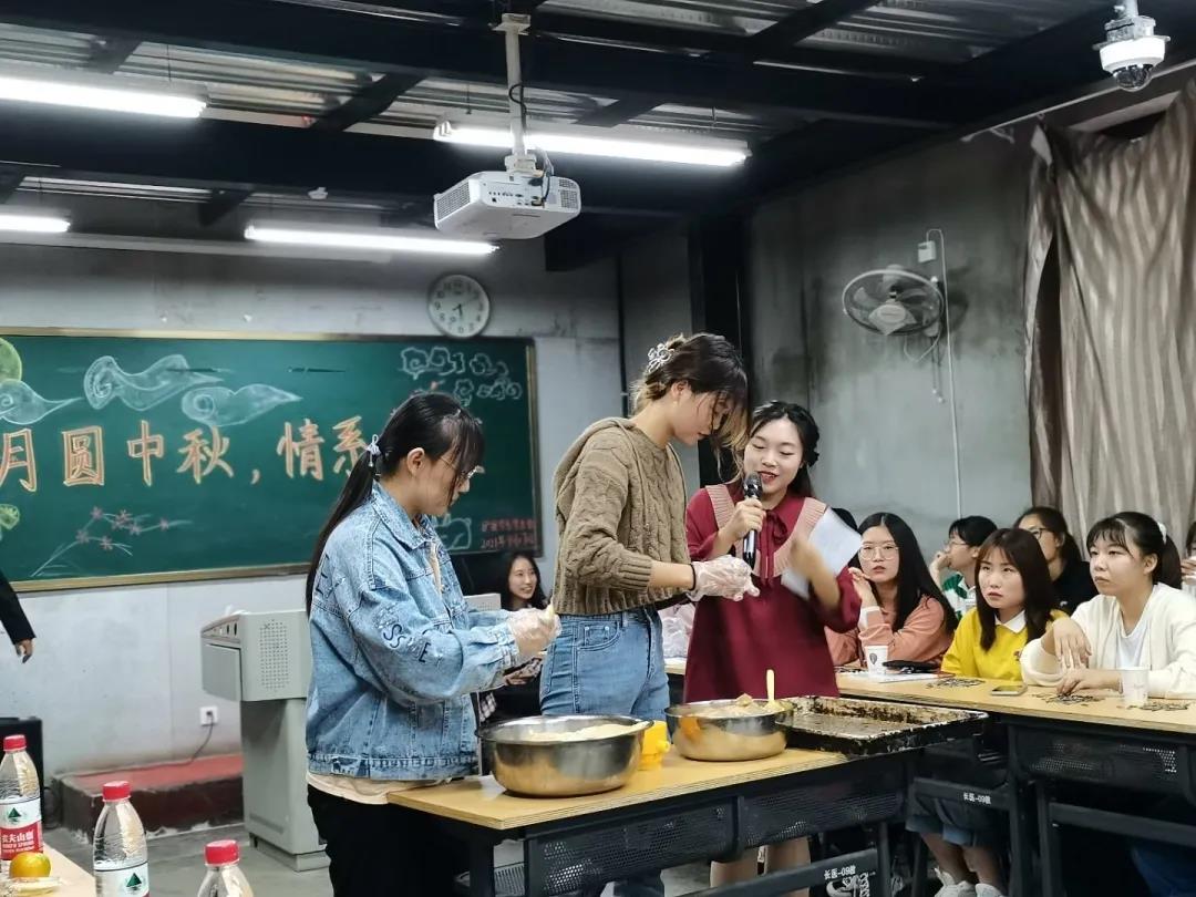 接下来是本场晚会的互动环节,中秋节当然少不了月饼,由两位同学的示范过后,工作人员为大家分发了材料,大家积极参与、其乐融融,一起亲手做起了月饼。大家的欢声笑语将晚会推向了高潮。谢冰老师更是深情演唱了一首《望乡》,并且强调节假日也不忘防疫要求,安全地度过中秋节。紧跟其后的舞蹈串烧,热辣的舞蹈动作点燃了现场气氛。最后,一首《但愿人长久》让晚会圆满落下帷幕。