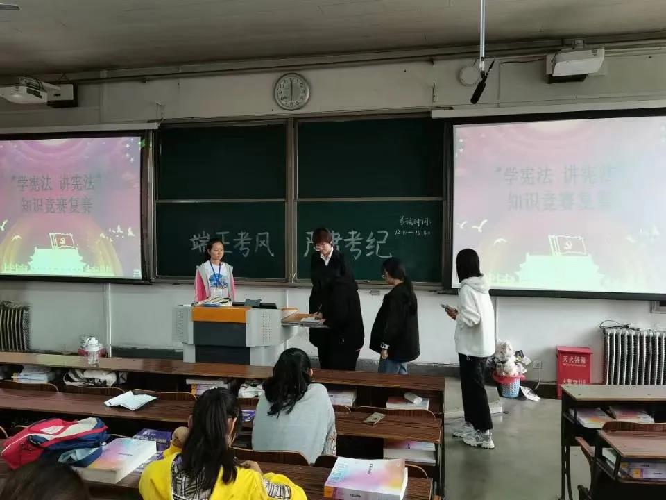 为深入贯彻学习习近平法治思想,进一步普及宪法知识,增强同学们的爱国意识,使宪法知识更加深入人心,9月24日,护理学系于南区二十教进行了知识竞赛复赛。参与此次竞赛的十三名同学分别来自各院系。