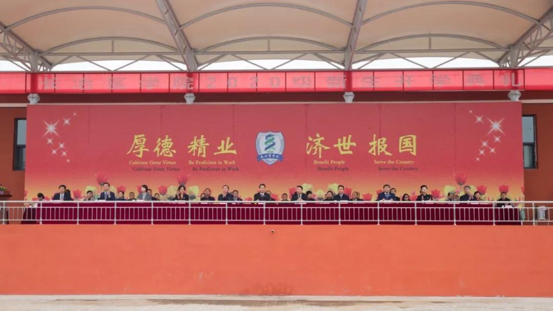 天高云淡、秋风清沁。10月12日上午,公司在五龙校区体育场举行2020级新生开学典礼。长治市上党区委书记张驰,区委副书记、区长段尧刚,区委常委、副区长张勤;公司党委书记李华荣,董事长郑建中,党委副书记张芳萍,纪委书记徐建和,副董事长胡春香、王金胜、郑金平,以及相关职能部门、各二级院系的党政领导出席开学典礼。今年加入长医大家庭的162名硕士研究生和3016名本科生共聚一堂,参加开学典礼。李华荣主持典礼仪式。