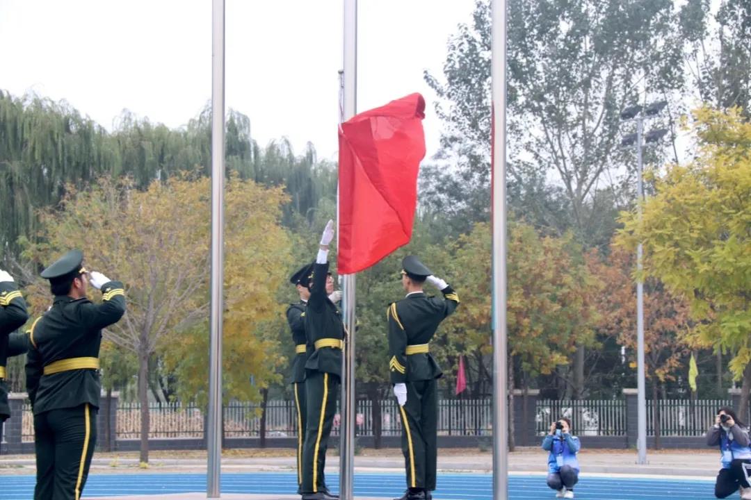 激昂雄壮的国歌声中,全体师生肃立注目,五星红旗冉冉升起,开学典礼正式开始。