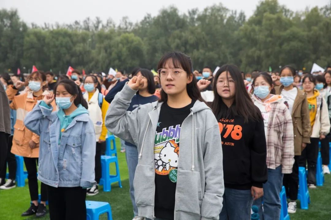公司党委常委、学工部部长邢育宏领誓,2020级全体新生进行医员工宣誓。
