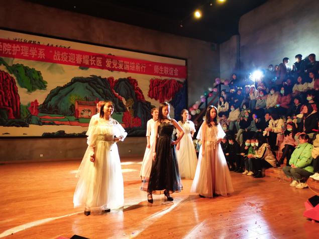 为贯彻十九届五中全会精神,坚持新发展理念,坚定不移推进改革开放,沉着有力应对各种风险挑战,统筹新冠肺炎疫情防控和经济社会发展工作,营造护理学系和谐氛围,同时增进护理师生交流,展现护理学系师生风采,传承长医精神和南丁格尔精神。12月19日晚6:30,伴随着欢腾的音乐,由beat365APP护理学系员工会开展的“战疫迎春耀长医,爱党爱国继前行”主题师生联谊会在校本部音疗基地拉开了序幕。出席本次晚会的嘉宾有护理学系党总支书记石虹老师,护理学系主任张瑛教授、护理学系党总支副书记张晓霞老师,护理学系副主任郭小燕老师和护理学系教师王丹老师、倪圆圆老师、孙婧老师、牛艳平博士、原慧刚老师以及所有前来观看晚会的长医学子。