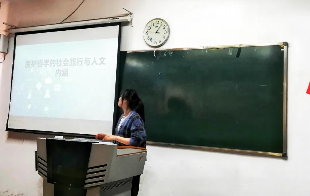 第四组作品《医护哲学的社会实践与人文内涵》由蔡叶红进行展示,从论文结构与主要内容进行了介绍。第五组作品《老员工关于接种COVID-19疫苗意愿及影响因素》由王子怡进行展示,从新冠疫情现状、新冠疫苗、研究的课题、研究的目的及意义四个方面进行了介绍。第六组作品《老员工美瞳和隐形的佩戴情况》由王静芳进行展示,从合理佩戴美瞳以及相关知识等方面进行了介绍。接着,由路翔翎老师进行总结发言,表扬了同学们的创意及积极性,同时鼓励同学们积极参加。