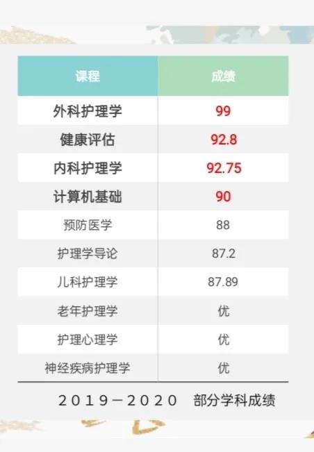 即使工作繁忙,她依旧努力学习,成绩稳步增长。下面是曾取得的部分学科成绩: