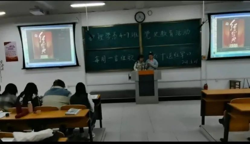 团支书认真准备每周的总结稿,在学习中,同学们对党的建设有了进一步的了解。2004-2007班学唱的《十送红军》,回望当时那个艰苦卓绝的年代,重现了党和红军可歌可泣、震撼人心的光辉事迹。