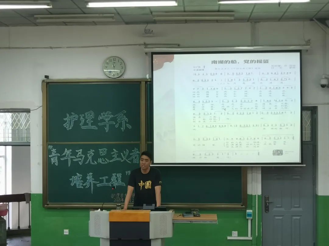 6月21日,护理学系“青年马克思主义者”培养工程,在北区5教室顺利开展。护理学系分团委书记谢冰老师结合自身专业特长以“唱红色歌曲,弘扬爱国真情”为主题,为同学们带来了一堂独具特色的音乐视听党课。