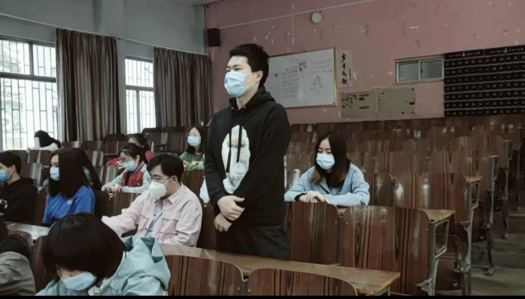 首先,由团支部书记吕文娇和李海清同学致开场词。对于这次疫情,党中央第一时间给予高度重视。1月20日,习近平总书记对新型冠状病毒感染的肺炎疫情作出重要指示,强调要把人民群众的生命安全和身体健康放在第一位,坚决遏制疫情蔓延势头。国家卫健委高级别专家组组长钟南山披挂上阵,连夜赶到武汉。各个社区的党员同志充分发挥了先锋模范作用,为社区防疫贡献力量。依托“集中力量办大事”的制度优势,全国340多支医疗队,42000多名医务人员千里驰援,重症、呼吸、感染等专业精锐力量云集荆楚,他们和武汉11万医护人员携手并肩,筑起了抵御疫魔的血肉城防。这次疫情,充分的体现了我国社会主义制度的先进性,靠着全社会的努力控制了这场疫情的恶化。
