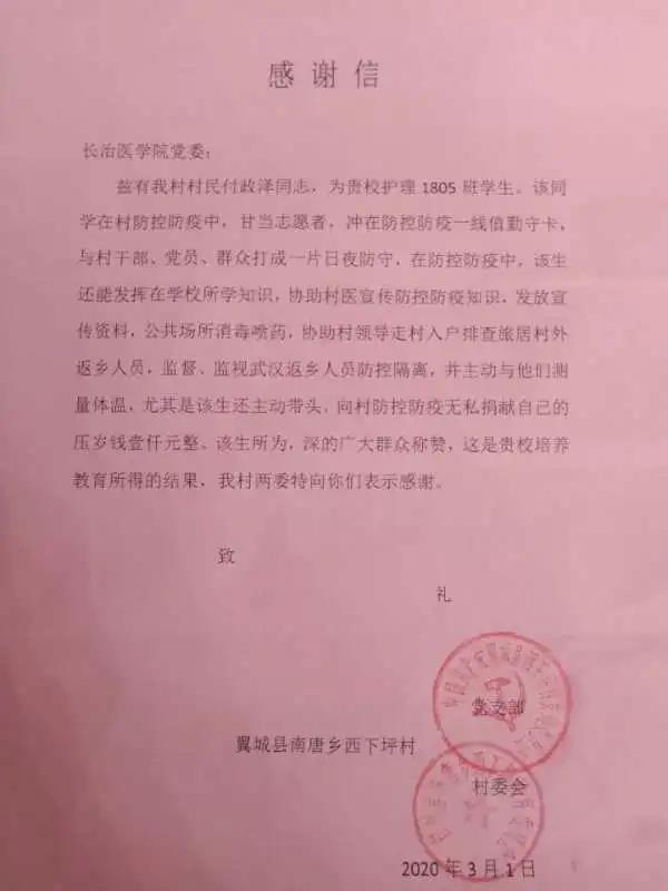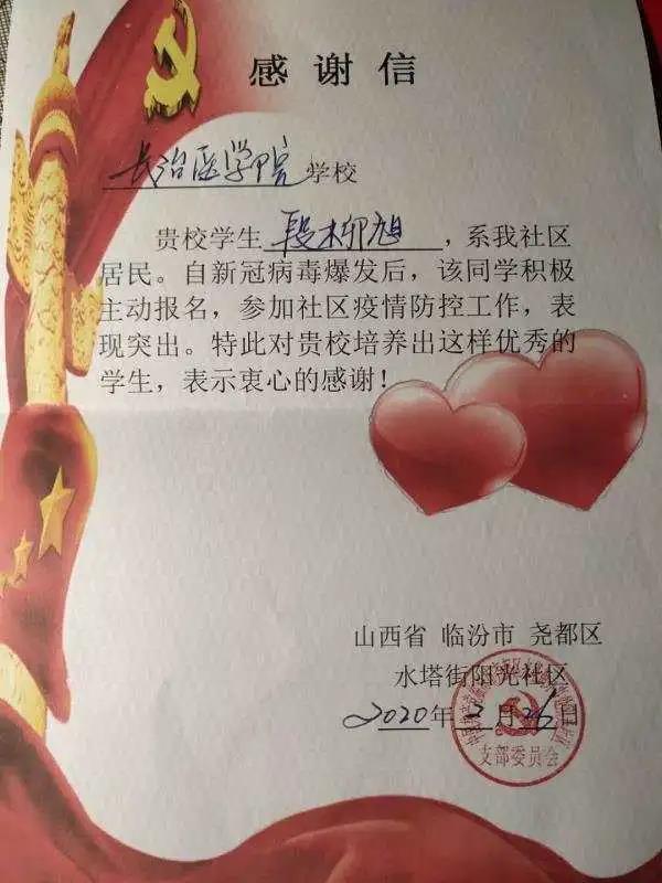 众志成城 抗击疫情,在这全国人民团结一心之时,我们陆续收到多封感谢信,感谢志愿参加疫情防控工作的同学。