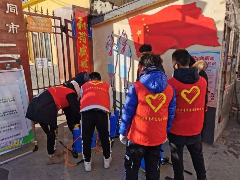 我们背着喷雾器、拿着喷壶,从一楼上到六楼,每一层台阶都需要喷洒。这次任务是完成两个小区的喷洒消毒。面对如此多的工作,没有一个人喊累、没听到一句抱怨、没看到一个人掉队,这就是属于我们共青团员的精神。