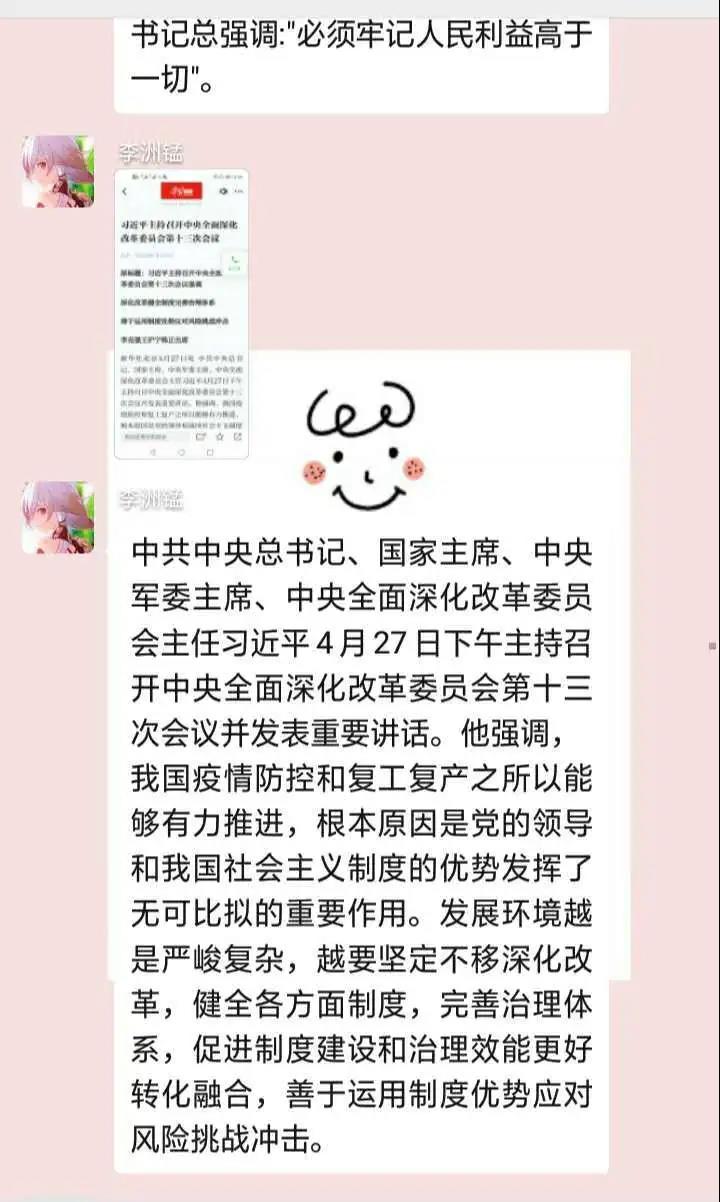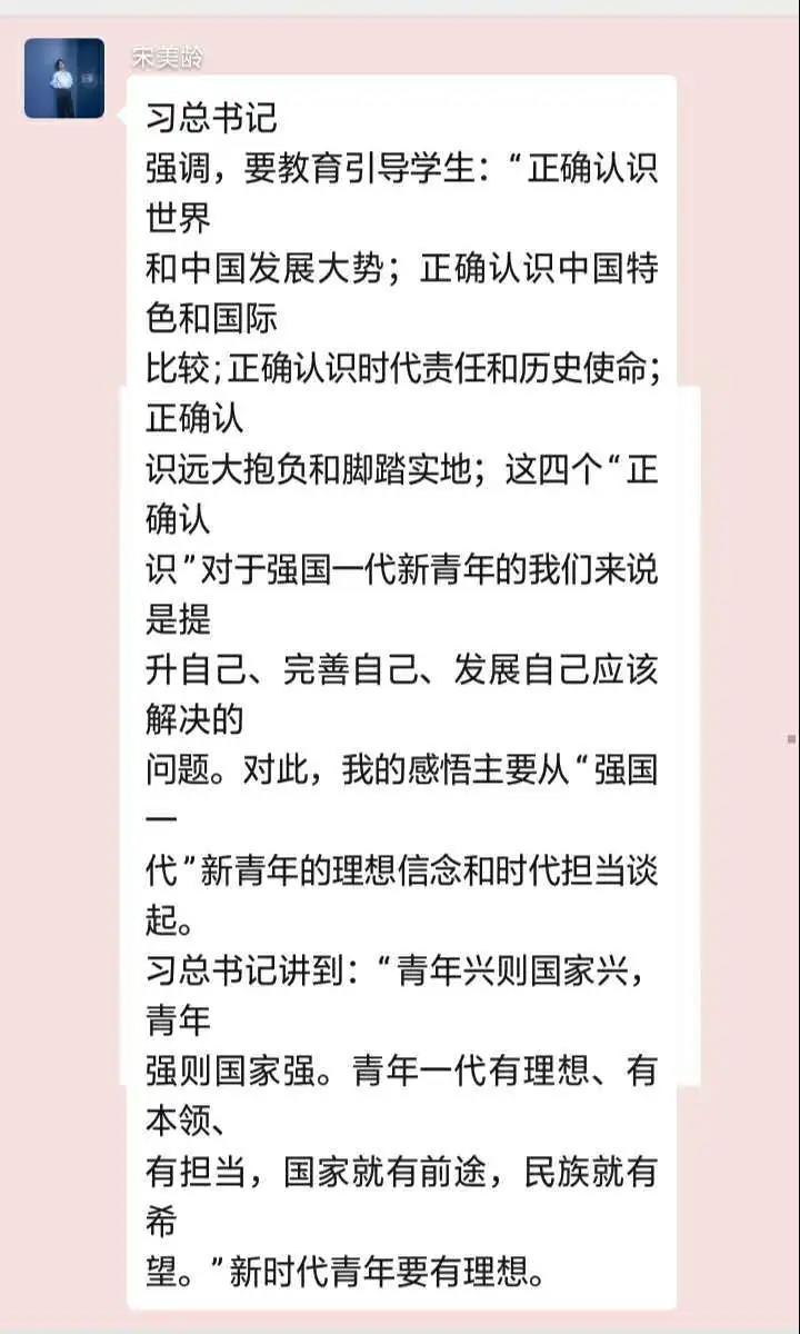 围绕“抗击疫情 脱贫攻坚 青春建功”的主题,护理学系1901班同学学习《习近平总书记给北京大学援鄂医疗队全体“90后”党员的一封信》,并写下自己的感悟,将学习内容截图与感悟,一同发到班级群中,互相学习 一起进步。