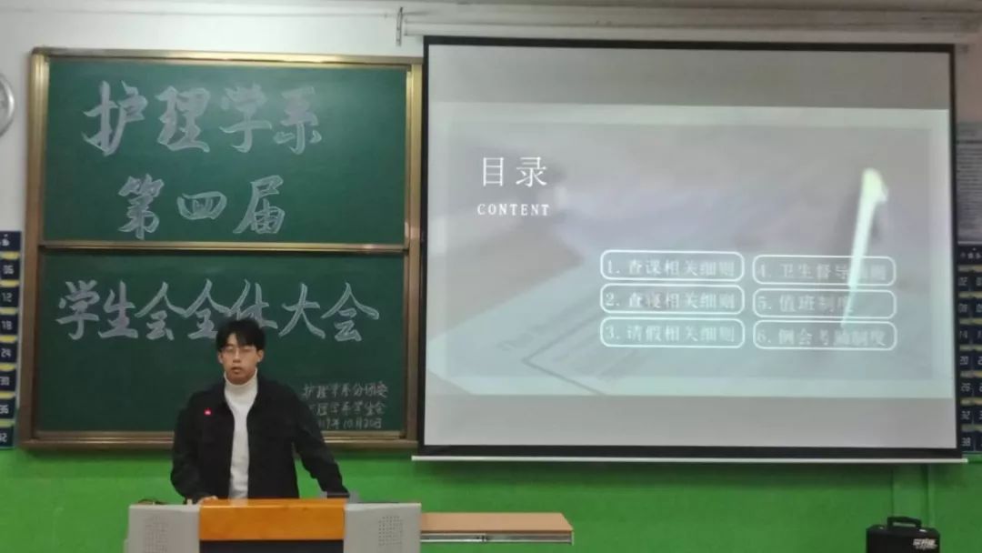 大会最后,由主席韩晓军同学传达了系分团委副书记谢冰老师对大家的要求,指出员工会成员要增强服务意识,完善管理,狠抓落实,营造文明和谐的护理学系。