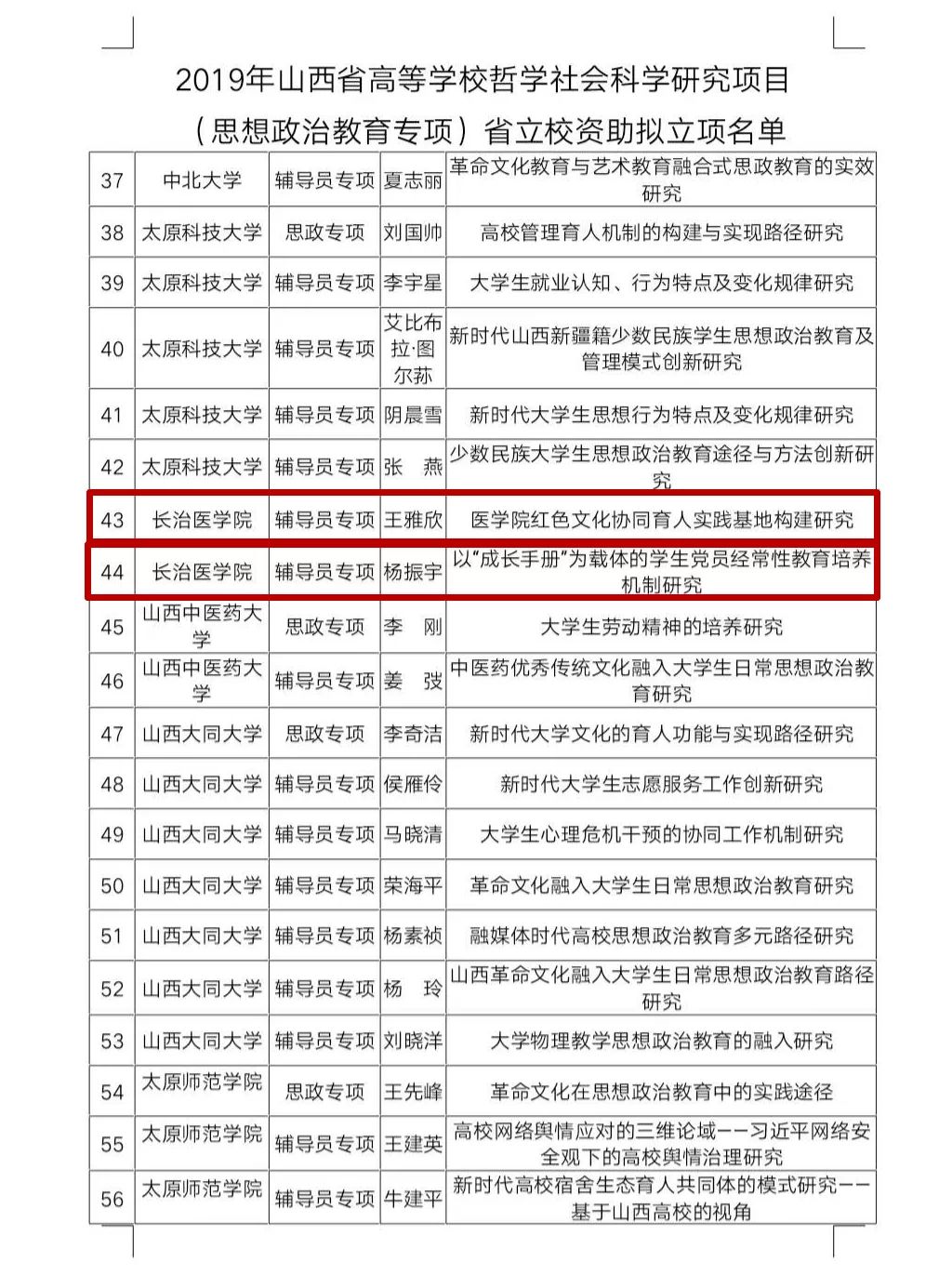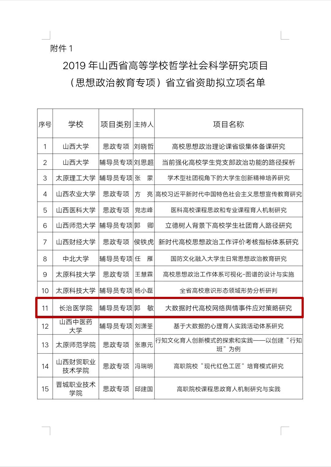 公司辅导员三项课题获得2019年度山西省高校哲学社会beat365唯一官网是什么项目(思想政治教育专项)立项