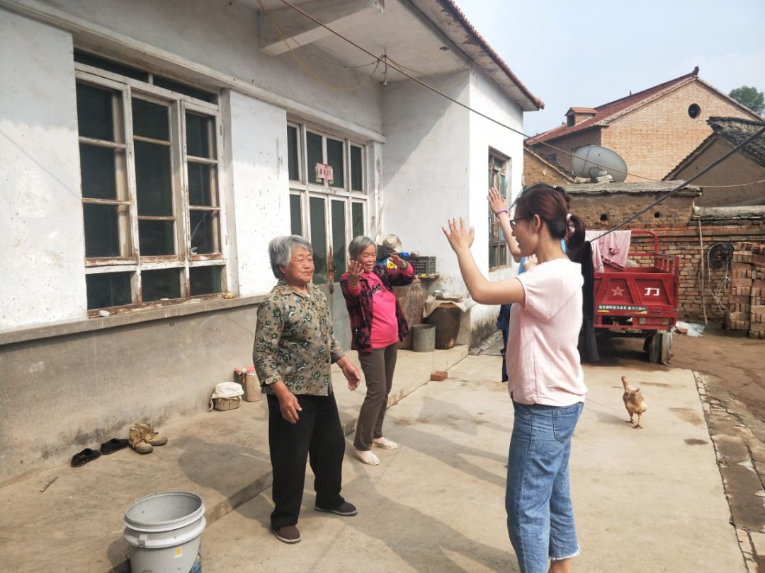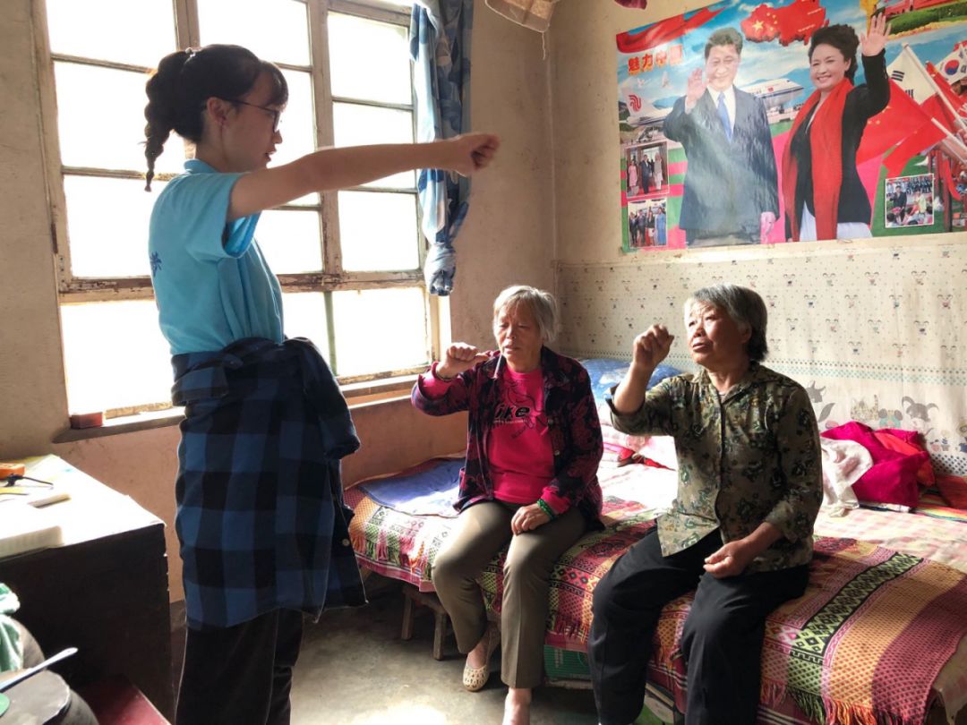 雨过天晴,踏着午后的阳光,我们再次踏上了前往消军岭的路途。我们分两组在两位老师的带领下,走入村民家中,陪老人聊天,对他们的问题做出解答和帮助,并向村民们示范“五行健康操”。爷爷奶奶们热情地跟着我们学习,笑容洋溢在他们的脸上,在欢声笑语中结束了今天的活动。