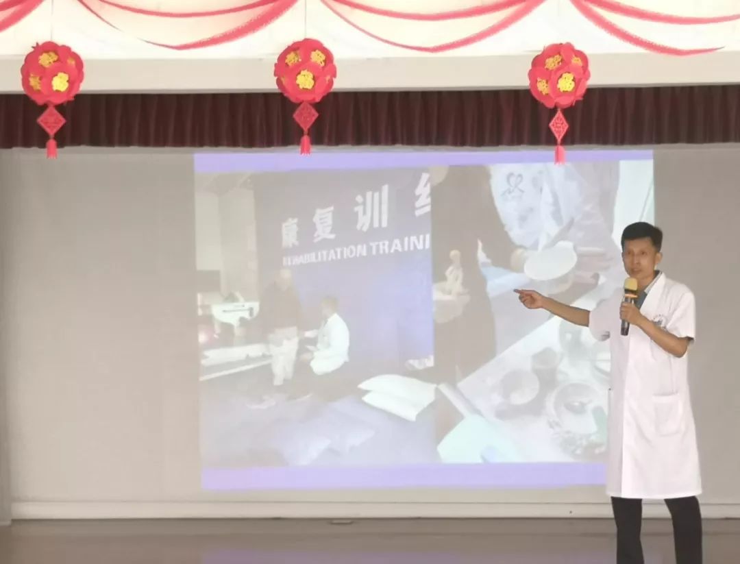 “康复的重要性”专题讲座。针对老人脑血管疾病,以及中风后引起的“后遗症”等症状的简要康复护理方法。