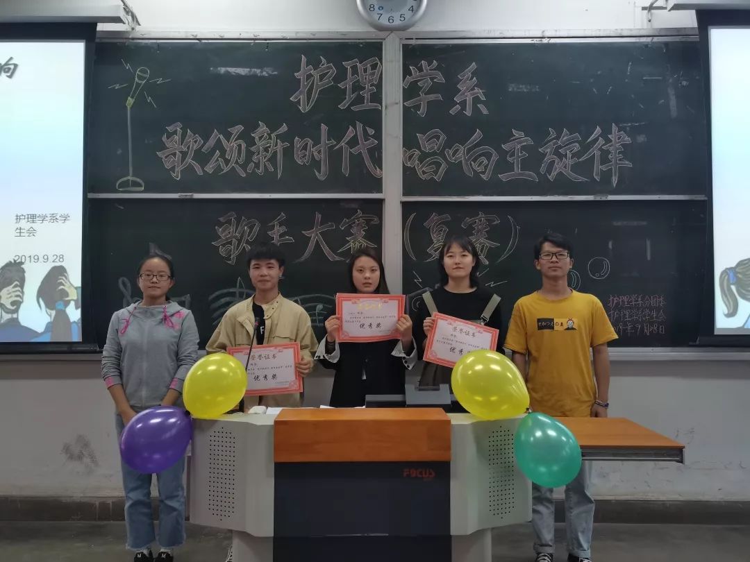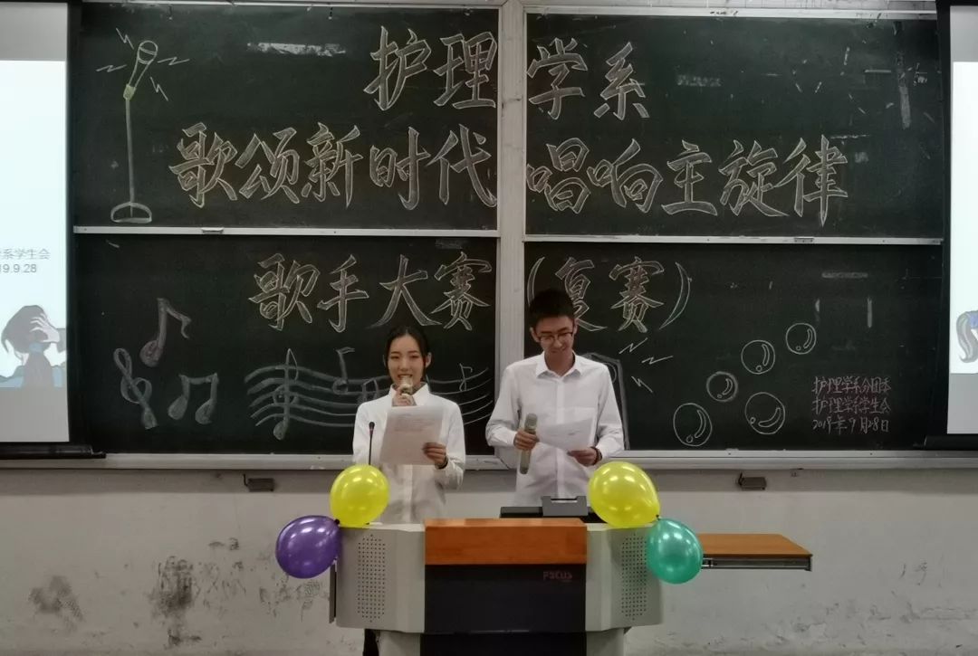 9月28日护理学系于南区11教举办了“歌颂新时代唱响主旋律”歌手大赛复赛,出席此次比赛的嘉宾有系员工会主席韩晓军、员工会委员会成员以及2018年护理学系“探赜歌者萧韶余音”歌手比赛亚军杨鑫、季军龙舟。通过此次比赛将选出优秀选手代表护理学系参加校级歌手比赛。