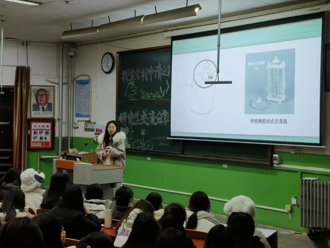 活动开始,研护2301班的冯文慧同学着重阐述了专利的核心价值,并结合个人经历,与大家分享了她探索专利的心路历程。她提出,临床经验是激发专利创意的重要条件,研究专利必须紧贴实际需求。接着,研护2401班的雷灵果同学对专利申请的流程和撰写技巧进行了深度解析。她细致说明了专利申请中发明点的具体要求,并强调撰写申请材料时,必须确保说明书内容完整、格式规范。