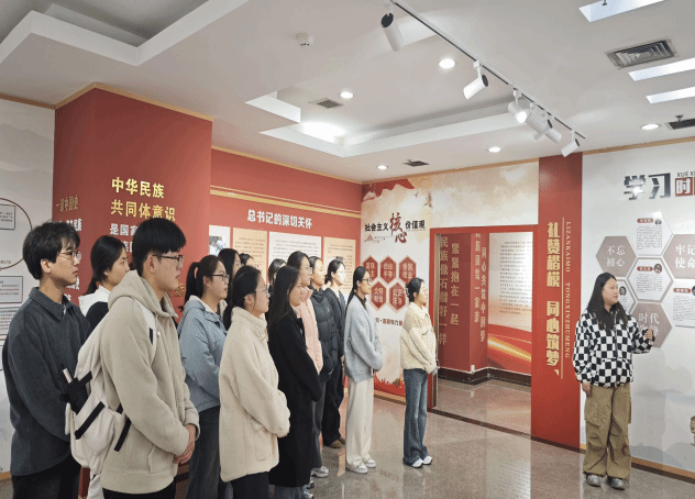 在解说员的引导下,支部党员依次参观“前言”“不忘初心牢记嘱托”“勠力同心休戚与共”“礼赞楷模同心筑梦”“党建引领铸牢意识”及“结束语”六大板块。通过图片资料、文字介绍、历史故事讲解等形式,系统学习铸牢中华民族共同体意识的提出历程、核心要义,深入了解习近平总书记四次视察山西的深切关怀,回顾各民族在革命、建设、改革时期的奋斗历程,以及学校在民族团结进步工作中取得的成果。