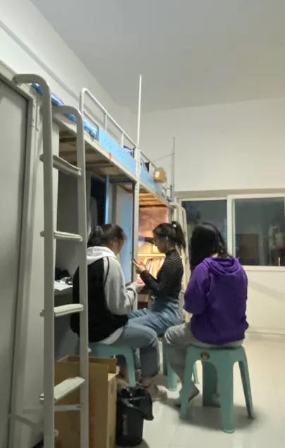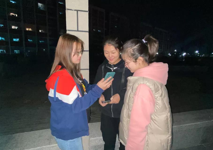 在观看直播后,大家学习的兴致高涨,在校园长廊内进行小组探讨。