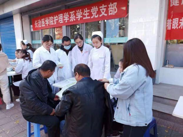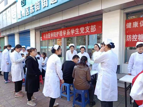 为深入开展“不忘初心,牢记使命”主题教育,积极践行习近平新时代中国特色社会主义思想,护理学系员工第一党支部、员工第二党支部于2019年11月14日“全国糖尿病日”之际,与长治市潞州区东街街道社区卫生服务中心联合开展“不忘初心,与爱同行”主题党日活动。参加此次党日活动的有护理学系员工党支部书记张召弟、马江平,员工党支部组织委员孙婧、张晓东老师以及部分员工党员。